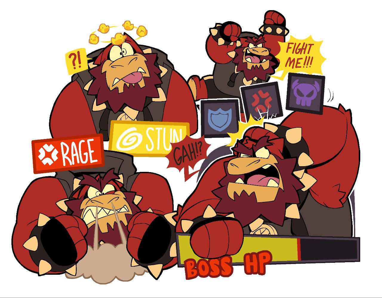 Rivals: Anyone that calls him some form of "giant ugly oaf"Your stereotypical platformer monster boss with a heavy side on some toony shenanigans. He's big, he's rude, and he's everyone's favorite to knock the lights out of! That is if he doesn't clobber you first.